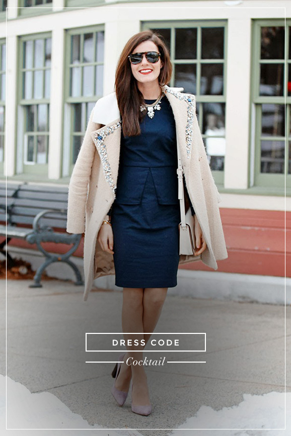 - Khi nhận được thiếp mời với yêu cầu trang phục cocktail, chúng ta hãy chuẩn bị tinh thần khoác lên mình những bộ trang phục tiệc tùng thời thượng. Chị em có thể lựa chọn một bộ đầm ngắn thời thượng. Tuy nhiên, nếu chị em nào muốn lựa chọn an toàn, hãy khoác lên mình một bộ đầm ngắn màu đen đi kèm các phụ kiện cá tính và vui mắt.