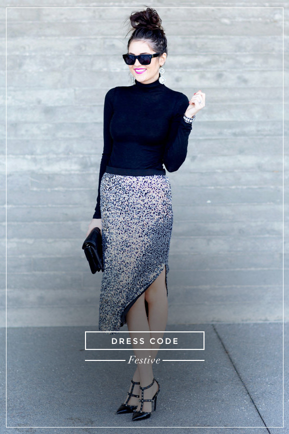 - Festive là một dresscode thường thấy trong những buổi gặp mặt vào dịp lễ tết. Giữa festive và cocktail có những điểm tương đồng nhưng ở festive có hơi hướng phá cách hơn, thể hiện ở trang phục váy satanh đỏ hoặc đính sequin.