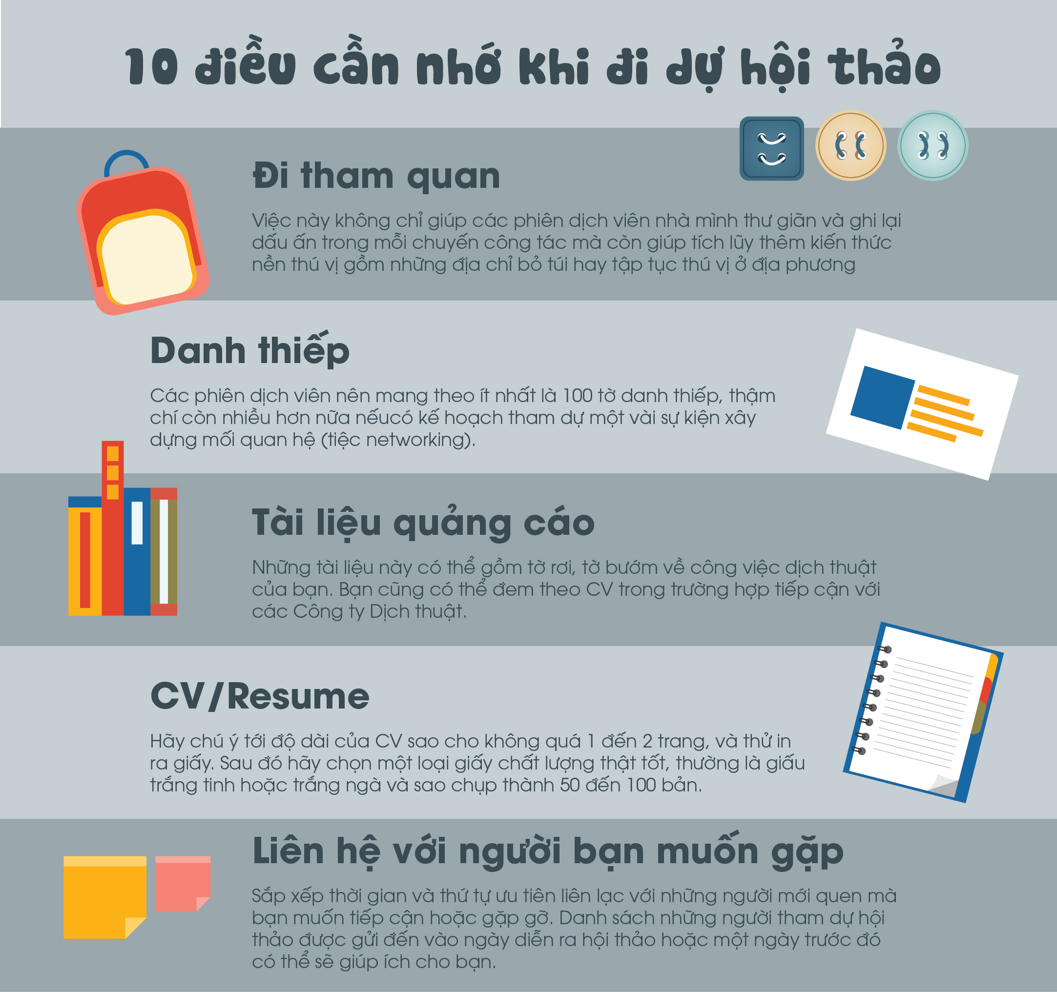 Còn các phiên dịch khác thì sao? Hãy chia sẻ kinh nghiệm của mình về những việc cần chuẩn bị trước khi tham gia hội thảo nhé!