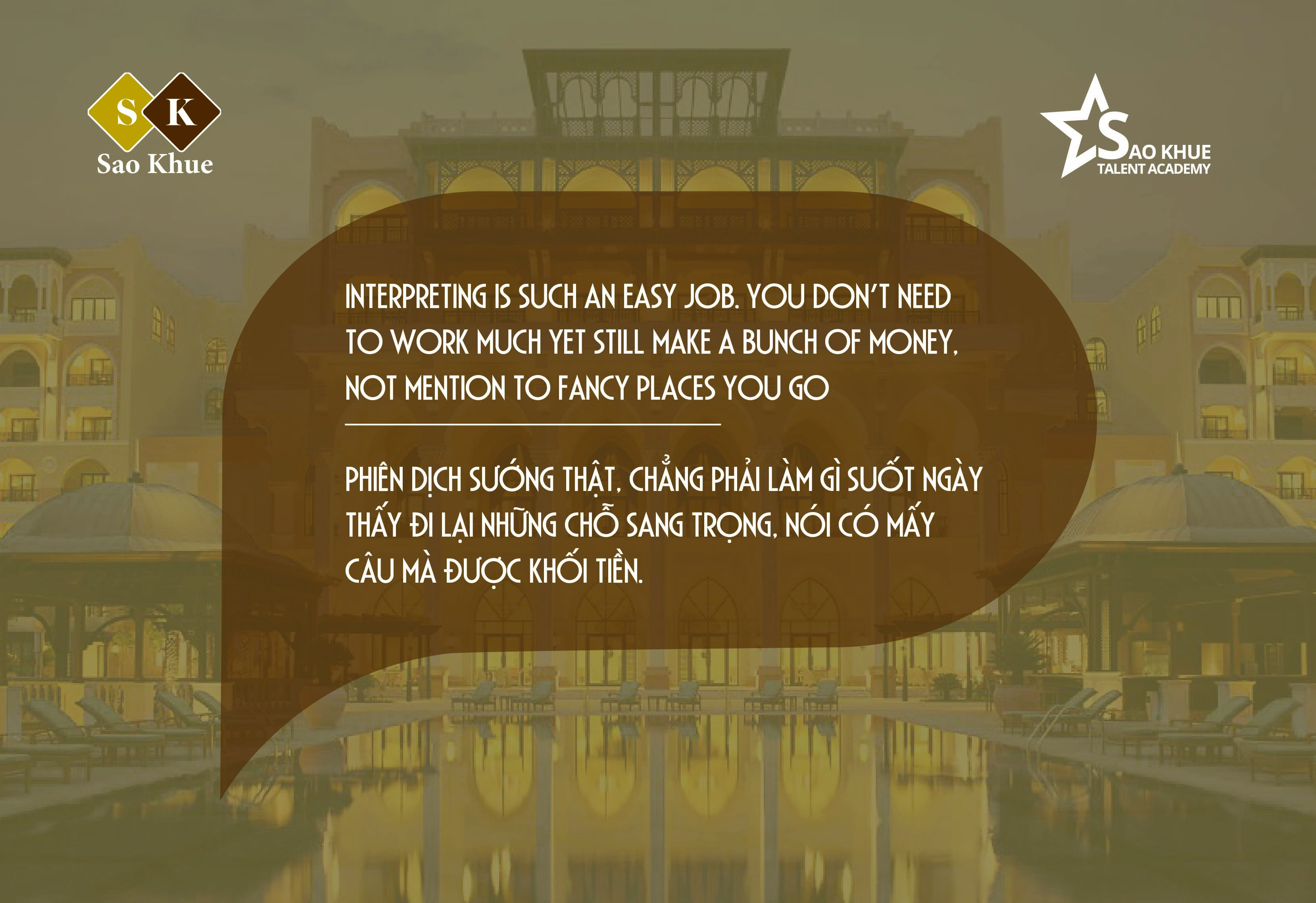 7. "Interpreting is such an easy job. You don’t need to work much yet still make a bunch of money, not mention to fancy places you go".